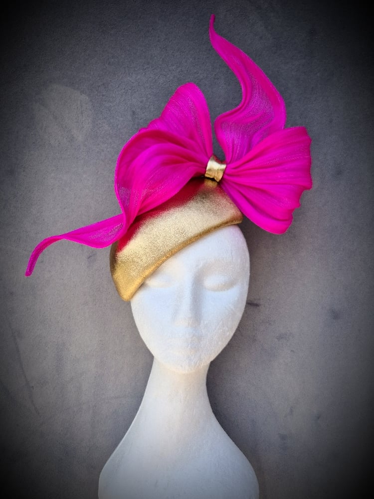 If you are looking for a comfortable statement piece, this style is for you! An easy to wear hugger base, trimmed with a structured bow in a colour of your choice! Pictured here in Hot pink! This style is made to order. Please allow a few days for production before delivery.