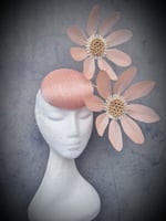 This gorgeous, hand blocked button in apricot, is lightweight, easy to wear and one of a kind. The flowers have been hand cut and make her the perfect spring addition to your outfit. Hat elastic will be fitted after purchase.