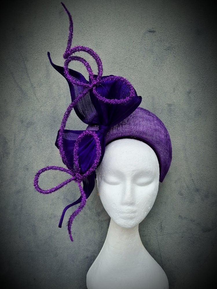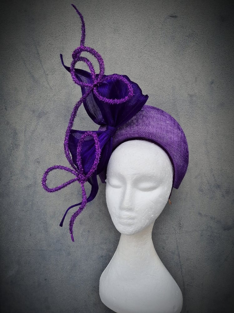 A stunning, handblocked and wired crown base, trimmed with silk abaca bow and matching crinoline tubing. Lightweight and easy to wear on a headband.