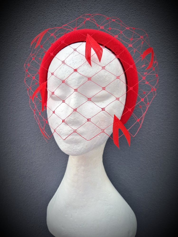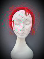 A cute, simple, padded headband, trimmed with a beautifully fitting veil with feathers.